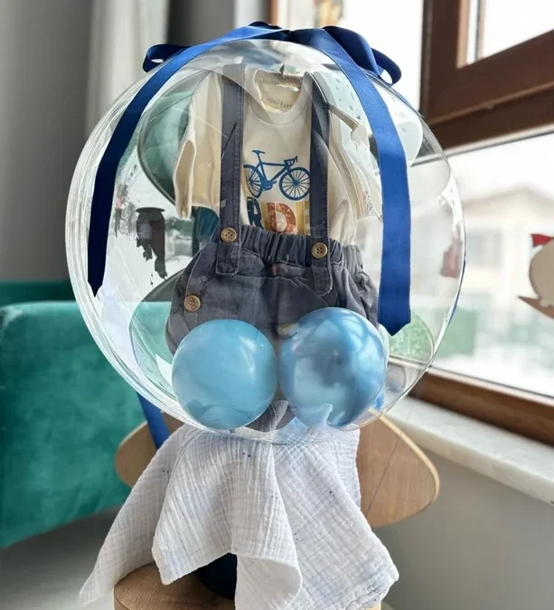 Estetik ve şık kutular: Genellikle şeffaf PVC ya da pleksi malzeme kullanılarak, içindeki balonlar ve hediyeler özenle sergilenir