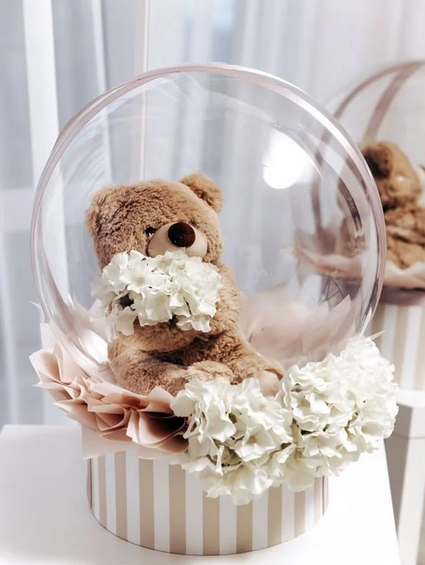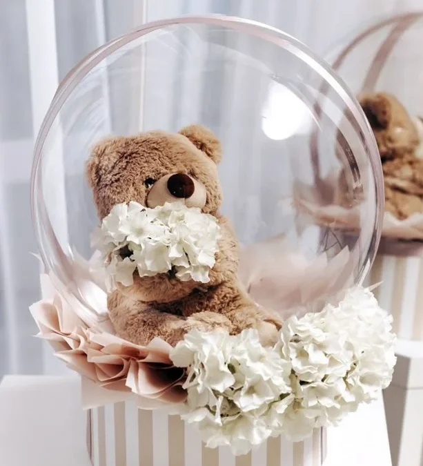 Estetik ve şık kutular: Genellikle şeffaf PVC ya da pleksi malzeme kullanılarak, içindeki balonlar ve hediyeler özenle sergilenir